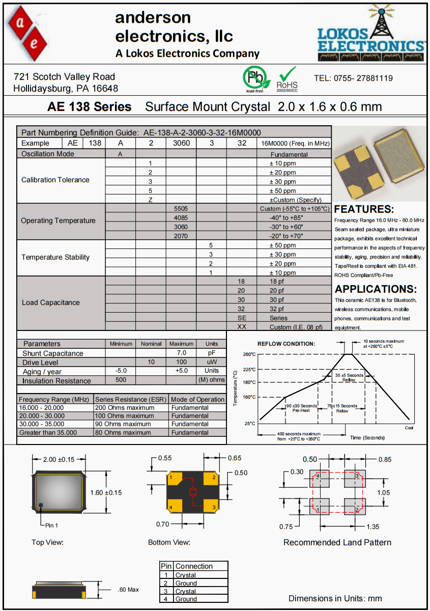| 案例 | AE138 | A | 2 | 3060 | 3 | 32 | 24M0000 (Freq. in MHz) |