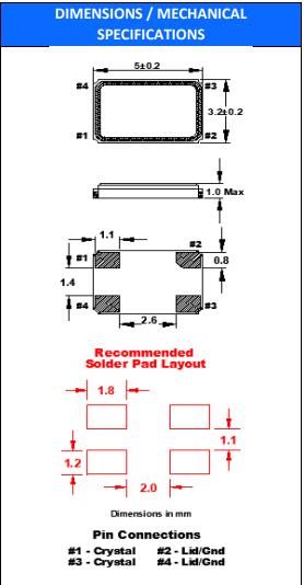 FOX晶振FX532B,FX532B-24.000石英諧振器 尺寸圖