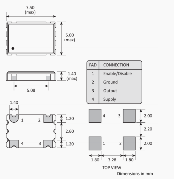| 尺寸 | 7.5 x 5.0 x 1.4mm |