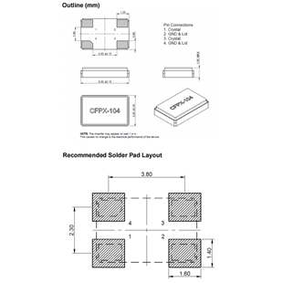 LFXTAL061633REEL,CFPX-104,5032mm,英國IQD進口晶振,移動通訊晶振,尺寸圖