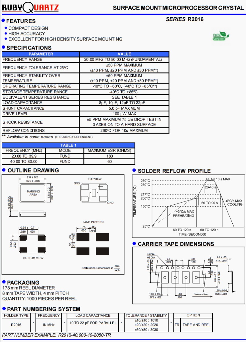 | 負(fù)載電容 | 8pF, 10pF, 12pF TO 22pF |