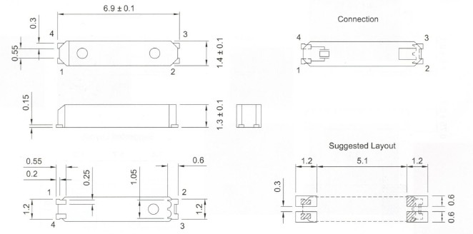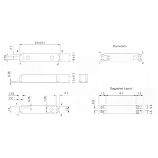 - 尺寸:6.9x1.4x1.3mm