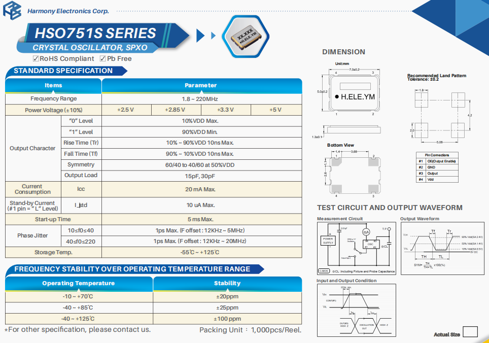 SSR050000I3CH晶振,通訊衛星晶體,HELE有源環保晶振,特點:微型超薄SMD產品尺寸(7.0×5.0×0.55 max)。特點:成熟的工業振蕩器封裝。三態函數。網絡和基站應用的通用解決方案。臺灣加高晶振公司,HELE晶振,高品質晶振,SMD晶振,石英晶振,HSO751S晶振,SSR050000I3CH晶振,有源晶振,貼片晶振,高精度晶振,6G通訊設備晶振,無線傳輸晶振,局域網晶振,3225晶振,小體積晶振,低損耗晶振 ,北斗衛星定位模塊晶振,6G無線網晶振,高精度晶振。
