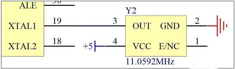 有源晶振通常有4個引腳,VCC,GND,晶振輸出引腳和一個沒有用到的懸空引腳.無源晶振有2個或3個引腳,如果是3個引腳的話,中間引腳是晶振的外殼,使用時要接到GND,兩側(cè)的引腳就是晶體的2個引出腳了,這兩個引腳作用是等同的,就像是電阻的2個引腳一樣,沒有正負之分.對于無源晶振,就是用我們的單片機上的兩個晶振引腳接上去即可,而有源晶振,只接到單片機的晶振的輸入引腳上,輸出引腳上不需要接,如圖2和圖3所示.