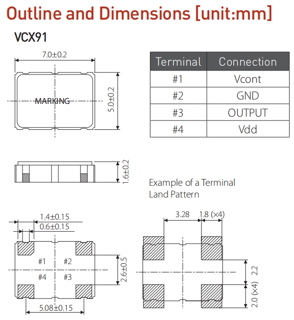 希華晶振,進口壓控晶振,VCX91晶振,有源晶振,是只晶體本身起振需要外部電壓供應,起振后可直接驅動CMOS集成電路,產品本身已實現與薄型IC(TSSOP封裝,TVSOP封裝)同樣的1mm厚度,斷開時的消費電流是15µA以下,編帶包裝方式可對應自動搭載及IR回流焊接(無鉛對應)產品有幾種電壓供選1.8V,2.5V,3V3.3V,5V,以應對不同IC產品需要.